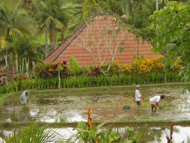 15 July: Planting new rice outside my Ubud windowxx