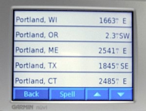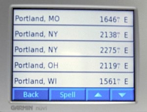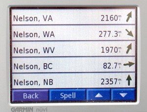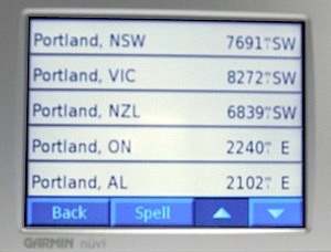 Below, you can see the ace GPS device’s efforts to find Portland, Oregon (when I was a mere 2.3 miles away) and lovely Nelson, British Columbia (a mere 82.7 miles distant). Scroll way down for the dopiest directions ever.